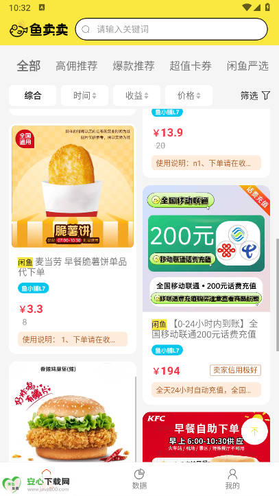 商品种类不同:鱼卖卖提供多种新品商品,用户可以通过推广赚佣金,而闲鱼的商品主要为二手物品。