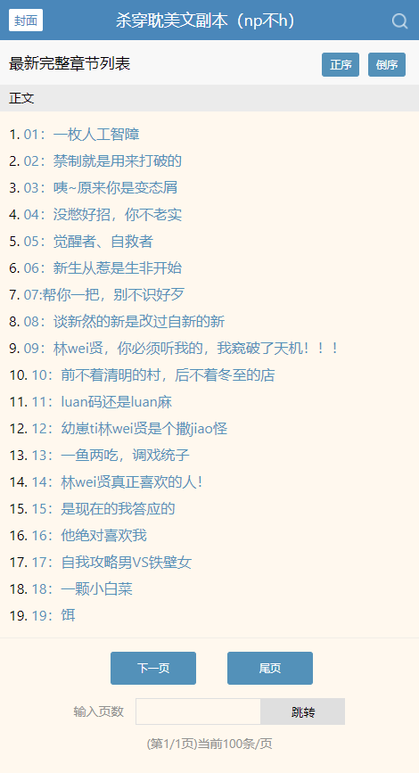 4、点击“章节目录”按钮,可以查看到完整的小说章节内容,并且可以任意跳转切换。