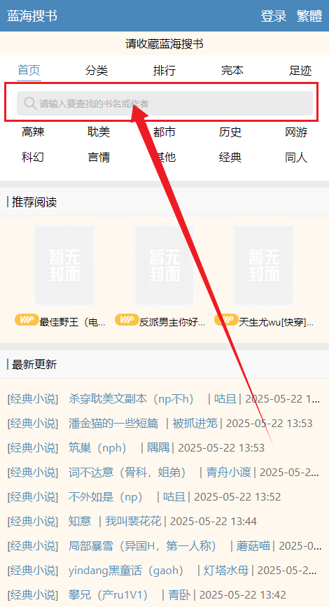 支持关键词搜索(如作者、书名、类型),并能快速定位小众或冷门作品。