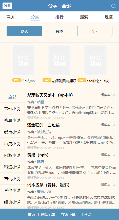6、然后在分类界面中我们可以看到各种类型的,各种标签的小说资源,