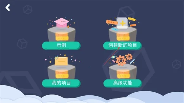 2、在编程功能选择页面,点击【创建新的项目】选项,进入项目编辑页面。