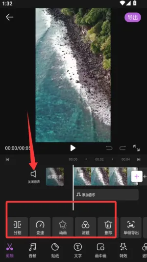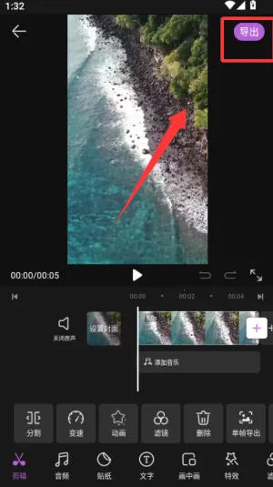 4、编辑完成后点导出,可调整清晰度和帧率,保存到手机或直接分享到社交平台。