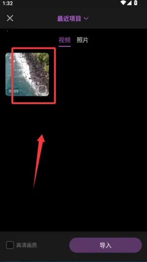 2、从相册导入素材,拖到时间轴上用分割工具裁掉不需要的部分,保留精彩片段。