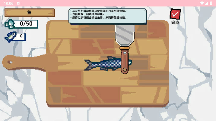 -从左至右滑动屏幕来使用你的刀来刮除鱼鳞。
