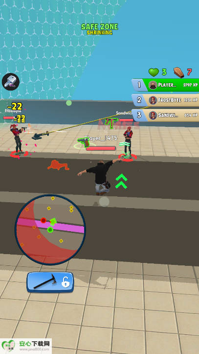 巅峰竞技场免广告版(com.lilyx.apexarena)是一款移动端极限竞技游戏,结合了快节奏的战斗、跑酷技巧和生存元素,为玩家提供了一场极具挑战的竞技体验。在这片狭小的竞技场中,你将与其他玩家进行生死对抗,拼尽全力生存下来,成为最后的赢家。