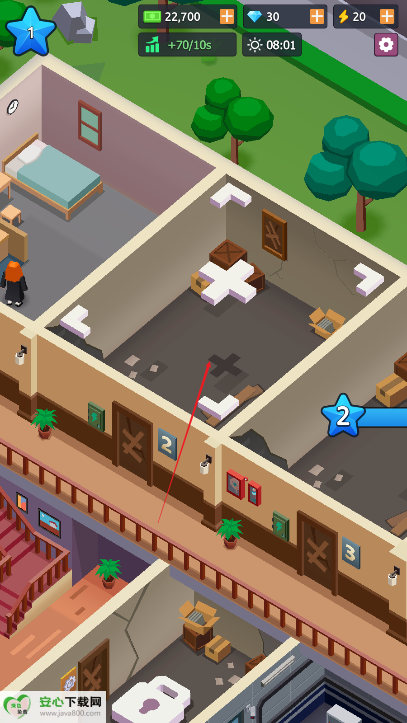 战略与放置玩法双向兼顾:打破传统模拟经营游戏的单一模式,既设置了轻松的点击升级操作,适合碎片化时间体验;又蕴含深度战略布局空间,玩家需合理规划设施建设、优化租户结构以实现利润最大化,兼顾休闲玩家与策略爱好者的需求,实现“轻操作,重策略”的平衡体验。