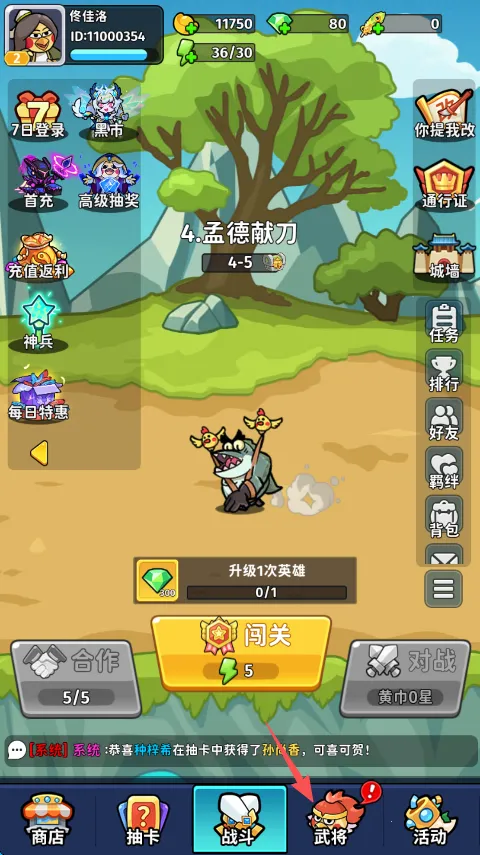 1、点击屏幕下方的“武将”。
