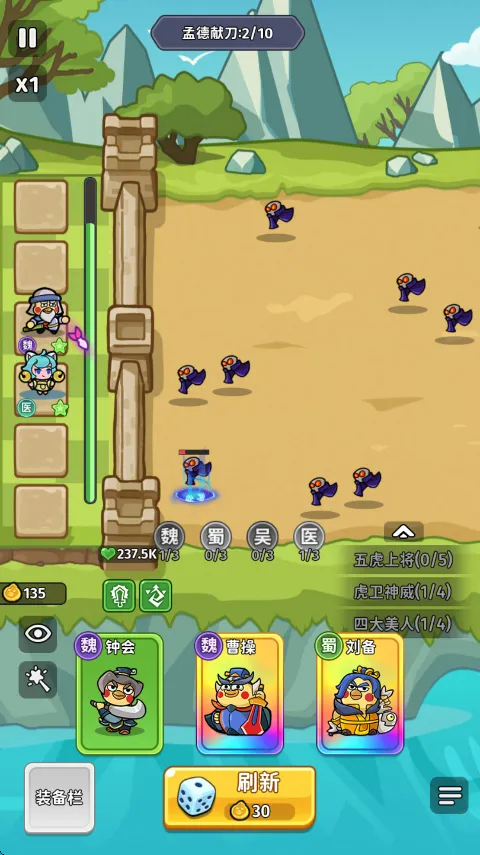 丰富阵营与羁绊:设有魏蜀吴医四大阵营,玩家可收集众多历史武将自由组建卡组。集齐特定武将可激活强大羁绊效果,大幅提升队伍战斗力,让战斗更加刺激。